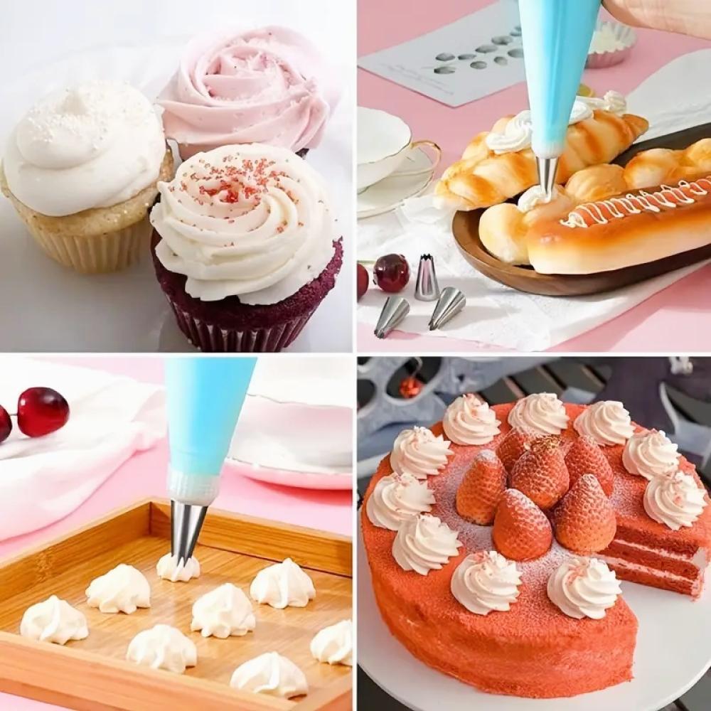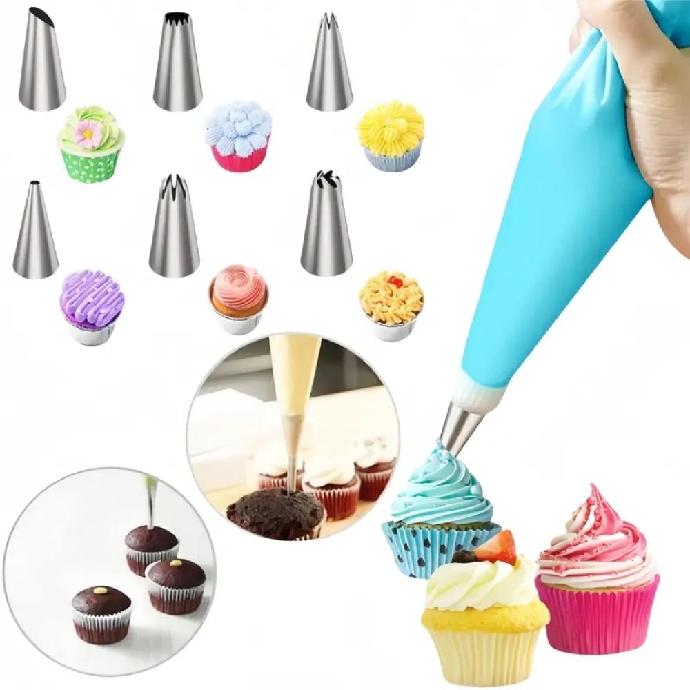 أقماع مع مجموعة فوهات تزيين الكيك من الفولاذ المقاوم للصدأ - 10 قطع، تتضمن 6 فوهات من اواني ماس